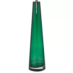 The Samara green glass table lamp is an elegant tapering hand made glass table lamp with a heavy glass base. Finished in rich emerald green with an ivory twisted braided cable and warm brushed gold work. The tall elegant shape makes it perfectly at home in a bedroom, or living room.