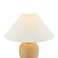 The Sasha Ceramic Table Lamp is a contemporary take on the traditional Greek urn. Part of the minimalux trend the tactile white washed terracotta, goes well with layered textures and neutral colours. Perfect for a relaxing lounge, bedroom or orangery. The look is elegantly finished off with a natural linen tapered shade.