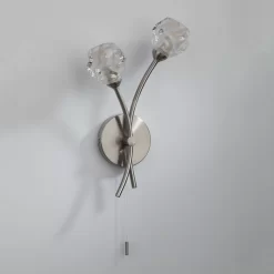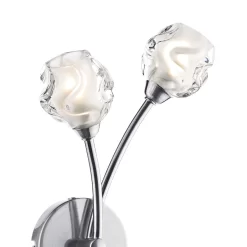 The SEATTLE 2lt wall light has clear sculptured glass shades with frosted inner detail upon a satin chrome frame.