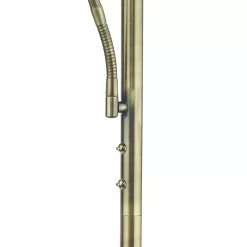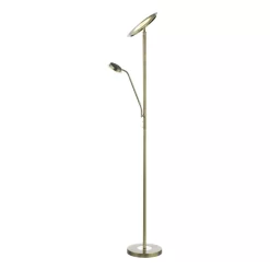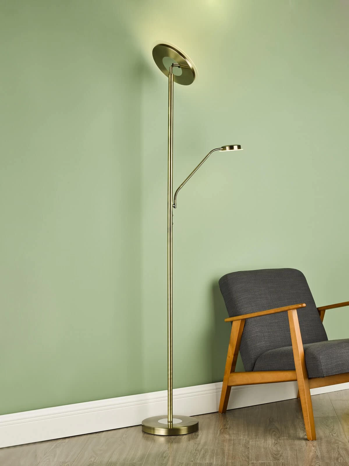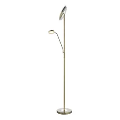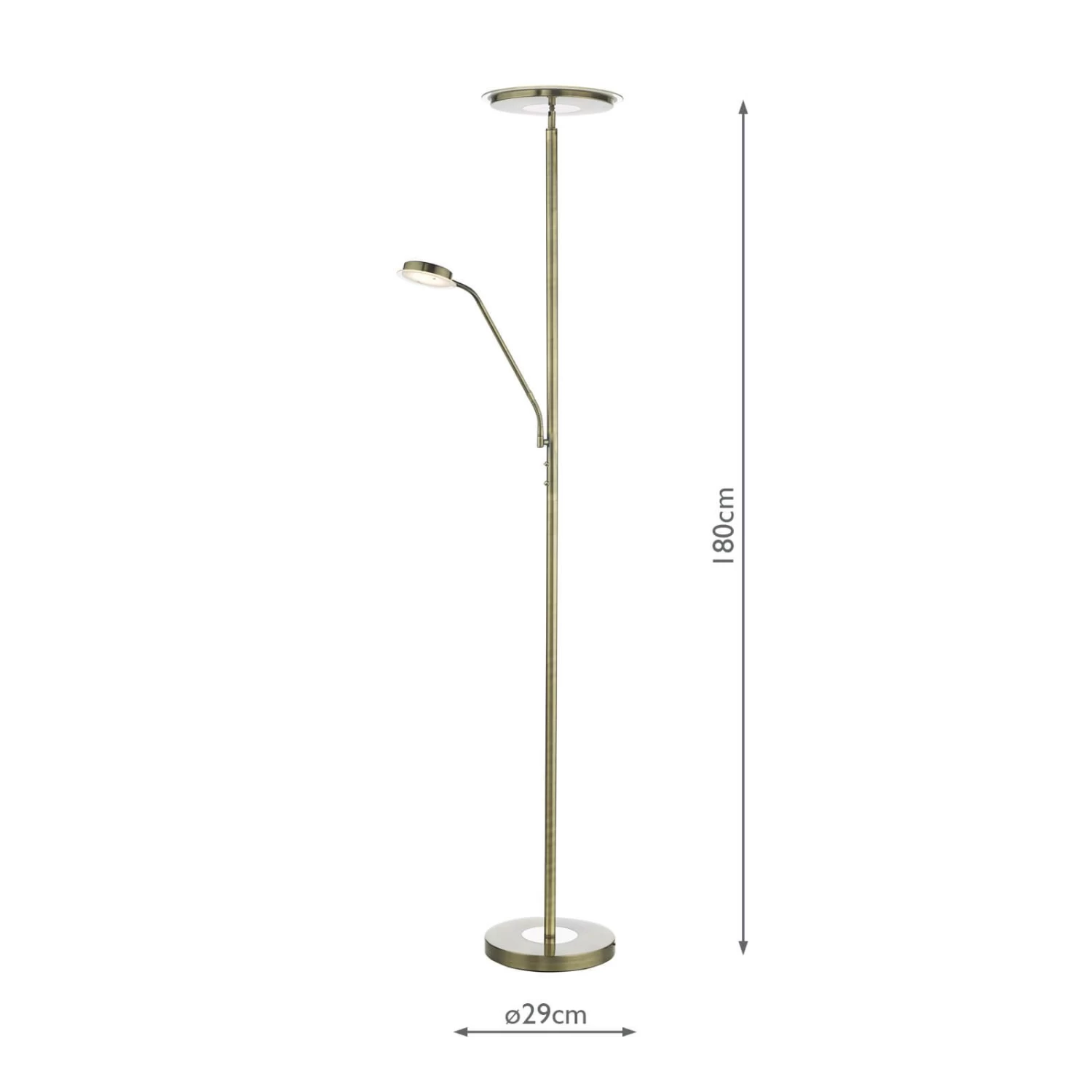 The Shelby LED Mother and Child is a wonderfully versatile floor lamp. Featuring a bright dimmable uplighter which can be angled to direct light against a wall or further into the room. An extra adjustable reading light is installed that can be controlled independently. Both light sources used highly efficient LED, which is also cool to the touch for ultimate safety. Finished in antique brass.