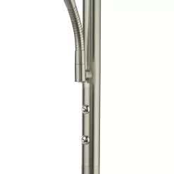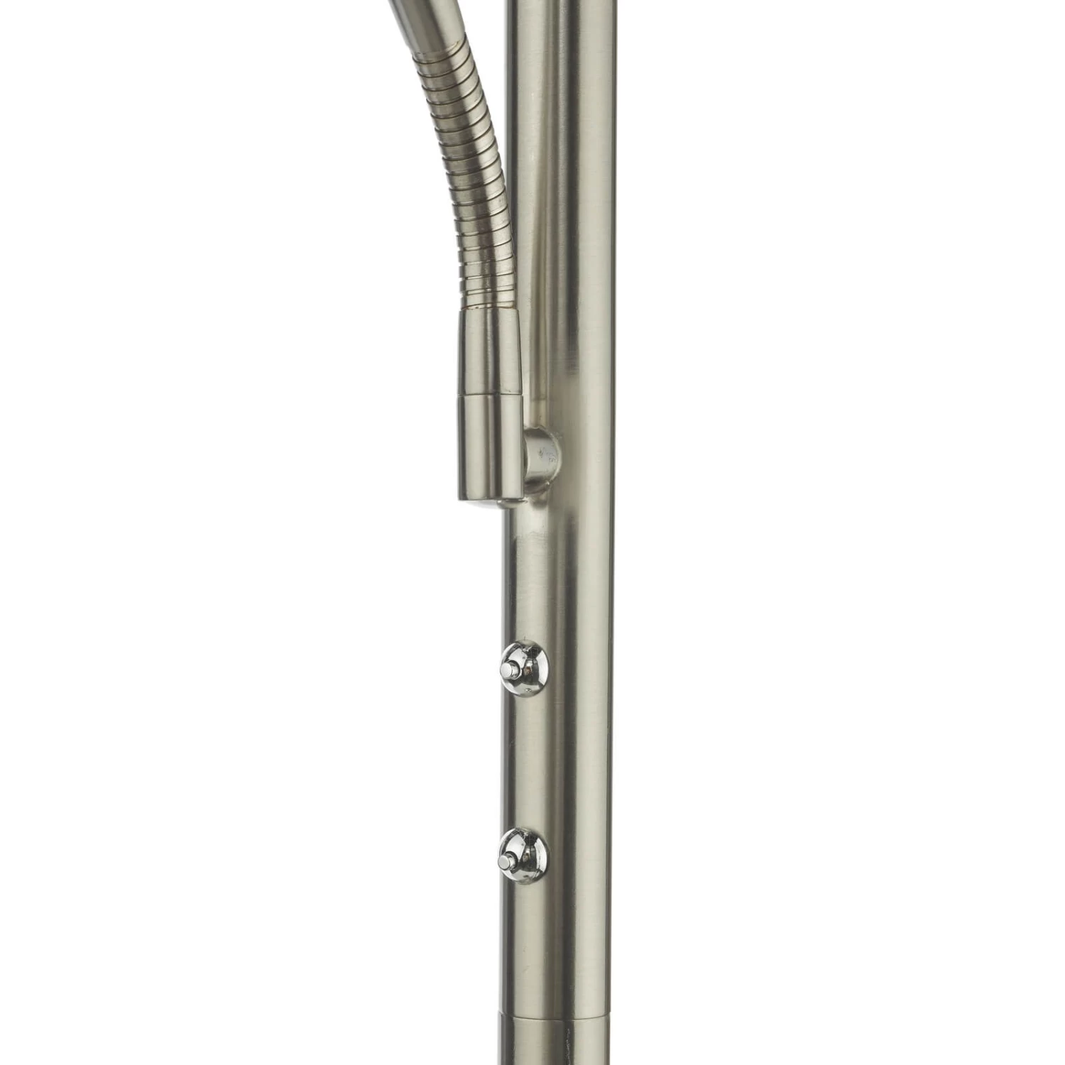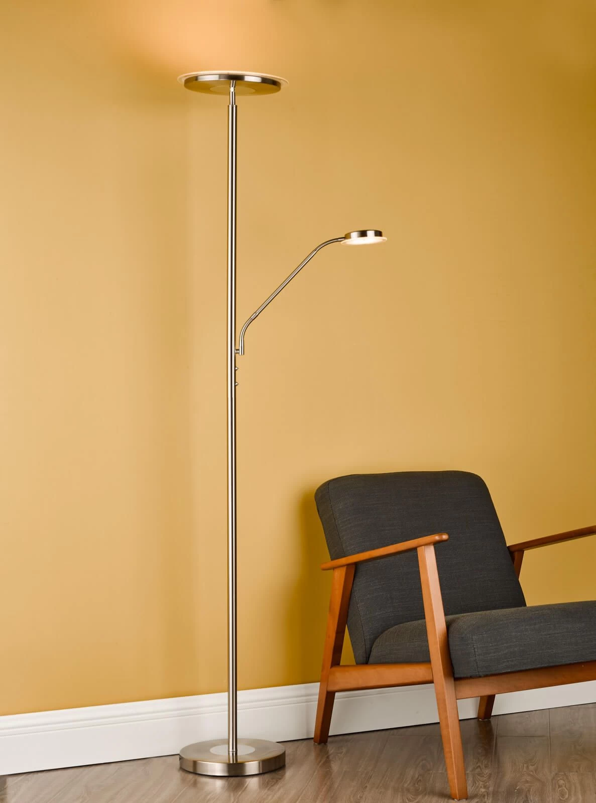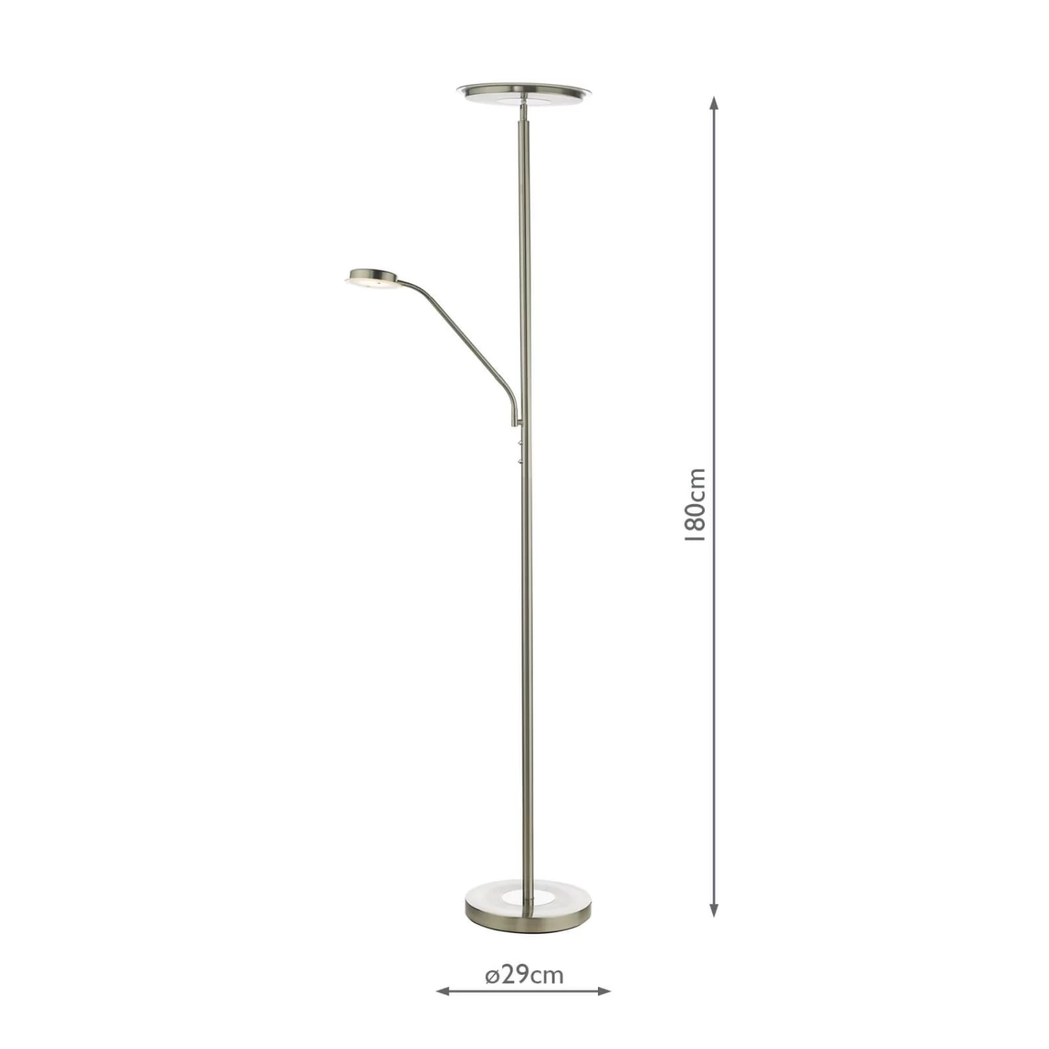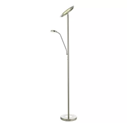 The Shelby LED Mother and Child is a wonderfully versatile floor lamp. Featuring a bright dimmable uplighter which can be angled to direct light against a wall or further into the room. An extra adjustable reading light is installed that can be controlled independently. Both light sources used highly efficient LED, which is also cool to the touch for ultimate safety. Finished in satin nickel, also available in antique brass.
