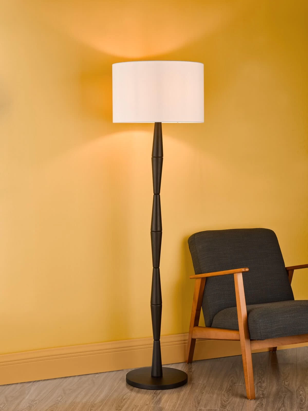 The contemporary Sierra Floor Lamp is made from solid wood geometric stacked pieces on a stable round base.