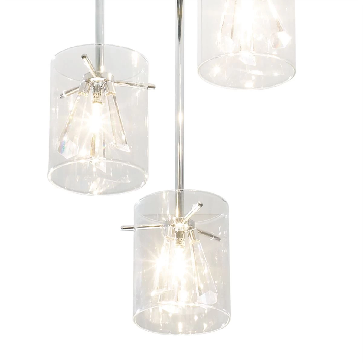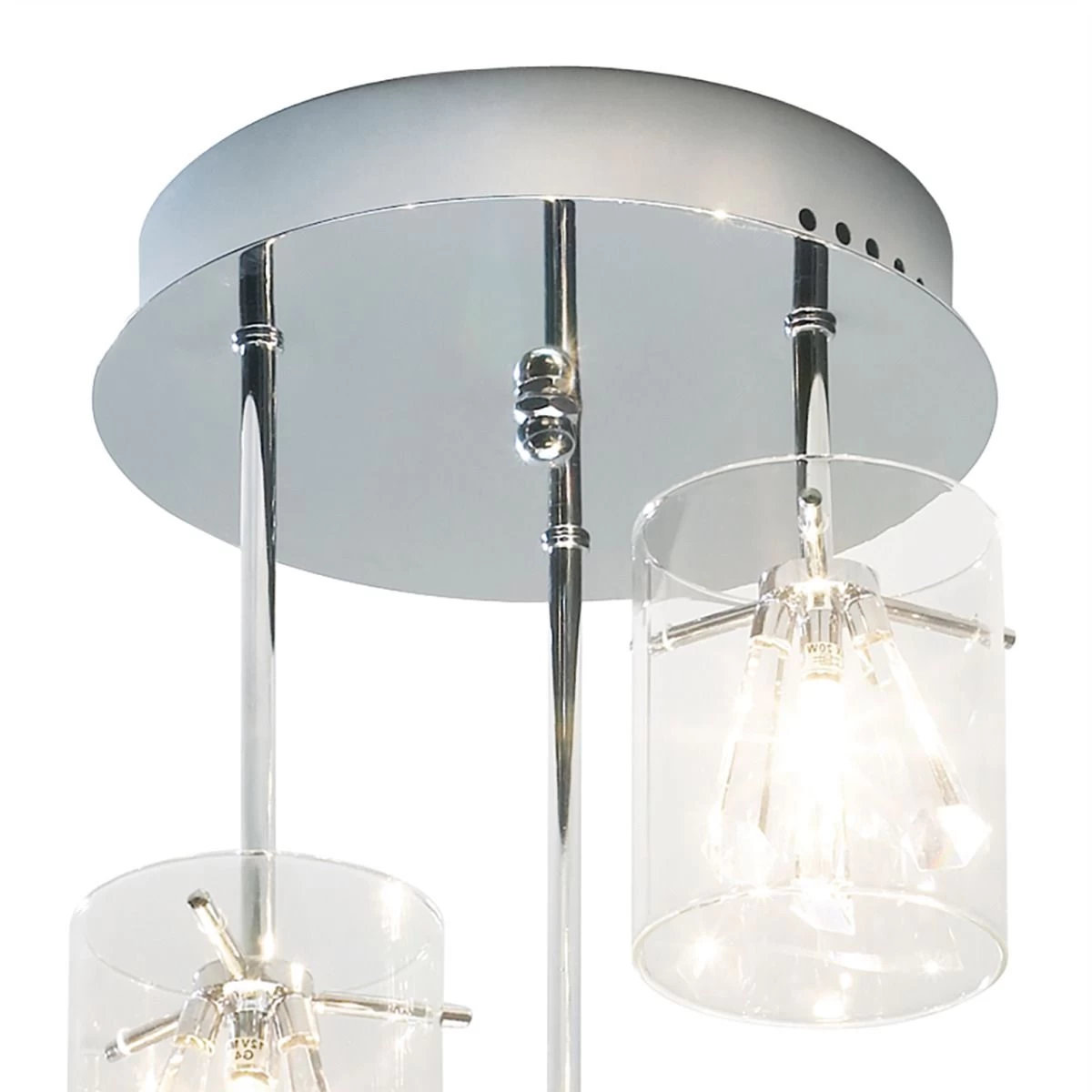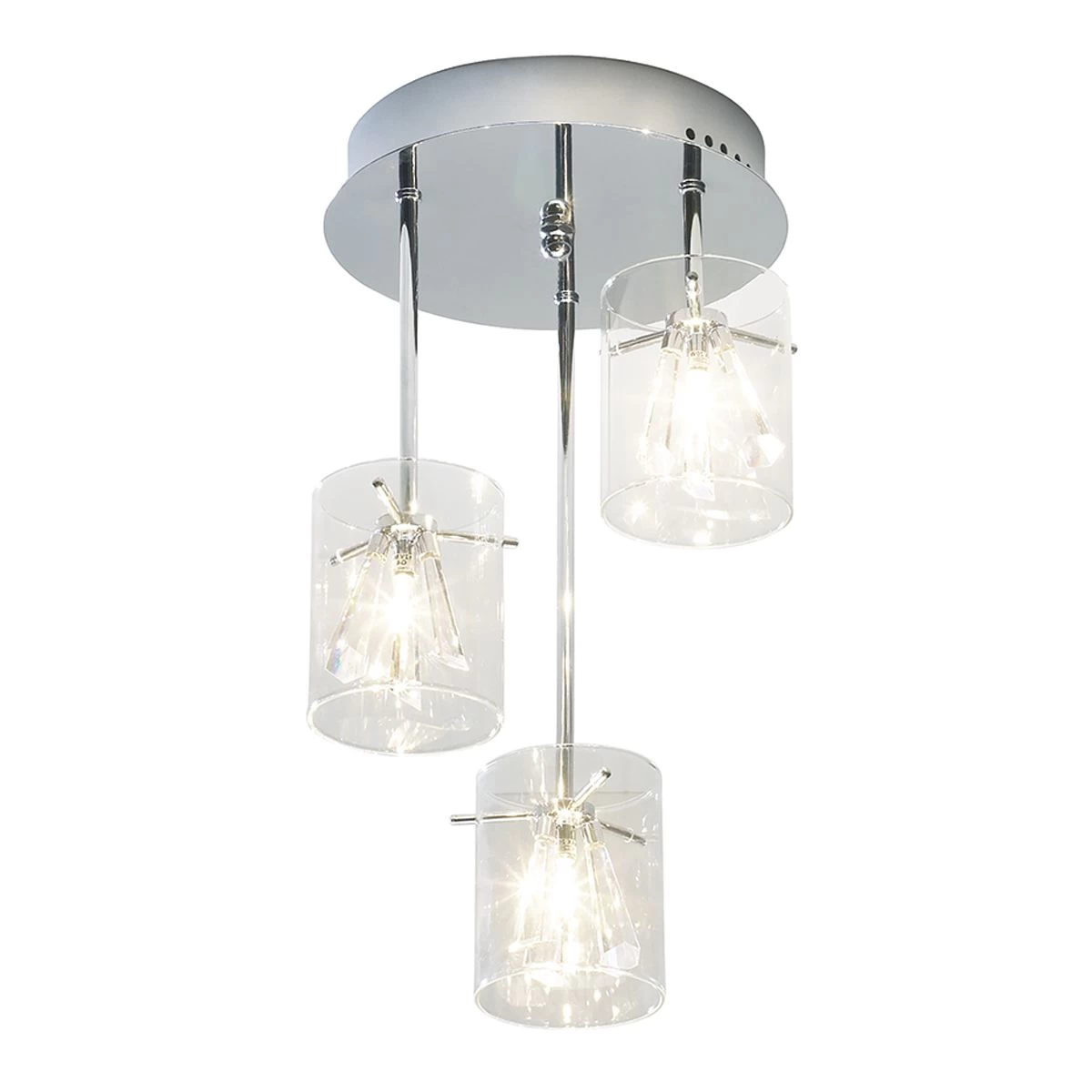 The SOMERSET 3lt Semi Flush fitting features 3 glass shades, each surrounding crystal drops set in a flower shape.