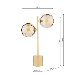 The Spiral 2 Light Table Lamp Matt Gold with Champagne Glass combines an oversized champagne dimple glass shade with a matt gold frame. The result is a contemporary lighting fixture with an eye-catching yet understated look. The Spiral 2 Light Table Lamp features an in-line rocker switch for ease of operation and uses two G9 bulbs (not supplied), We recommend using LED bulbs from our range of LED bulbs