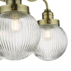 The Tamara 3 light bathroom ceiling light features three elegant ribbed glass shades, which would be equally at home in a French bistro or a country kitchen.