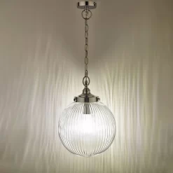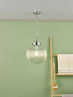The Tamara single bathroom pendant is an elegant ribbed glass pendant which would be equally at home in a French bistro or a country kitchen.