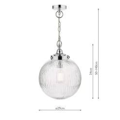 Finished in polished chrome with 1m of chain which is height adjustable on installation. A matching wall lamp is also available.