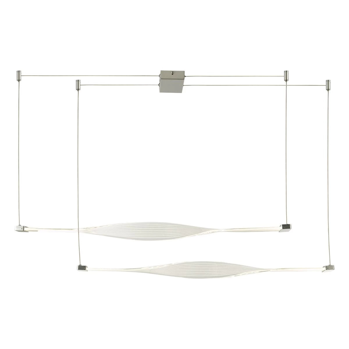 Our TWIST 2 light LED bar pendant will add a refreshing style to your living space. Featuring an etched acrylic bar with a matt silver painted finish. The LED has a 4000K output, offering a cool white light that’s ideal for your kitchen, work space or vanity where task lighting is needed. Complete with 100cm of cable, which is height adjustable at point of installation.