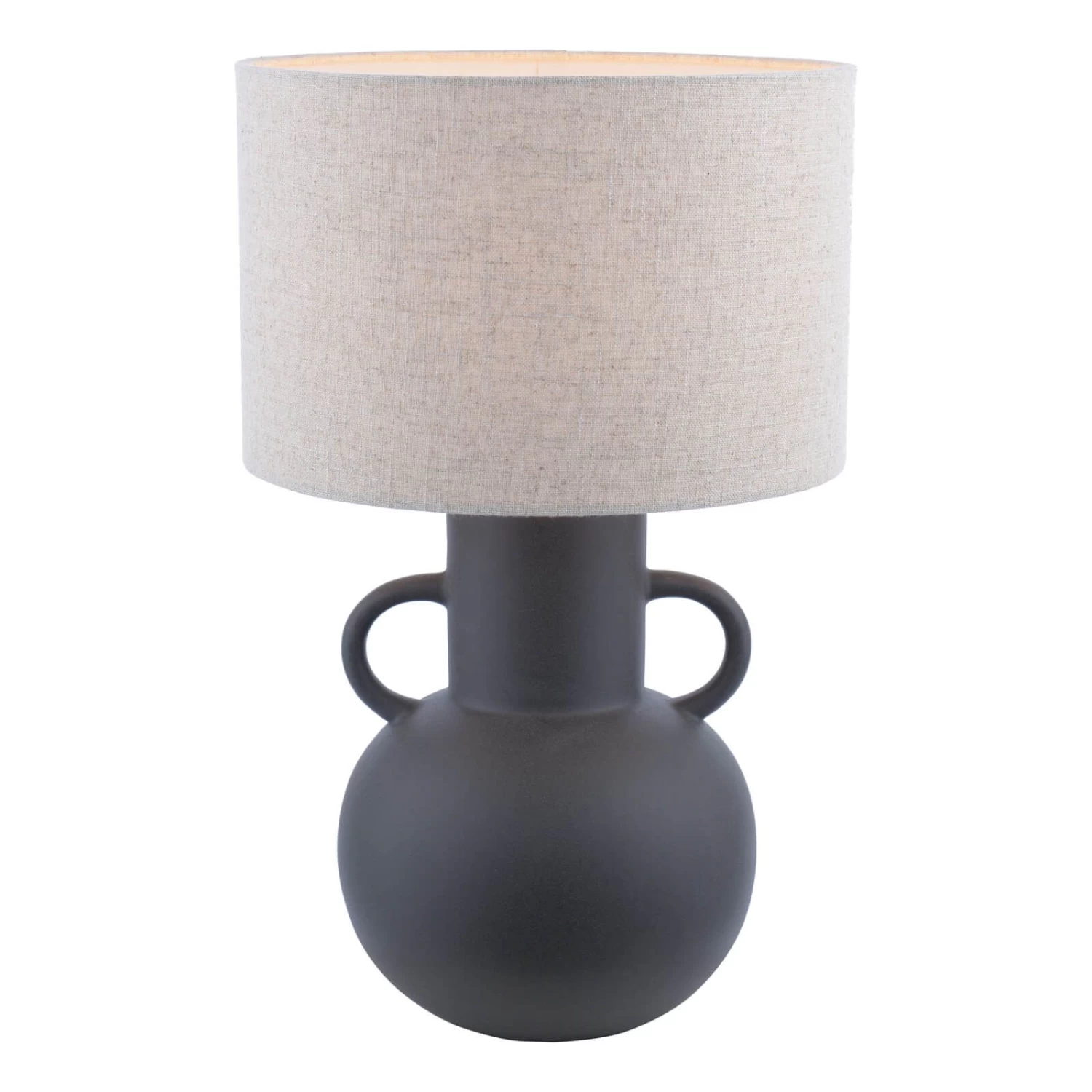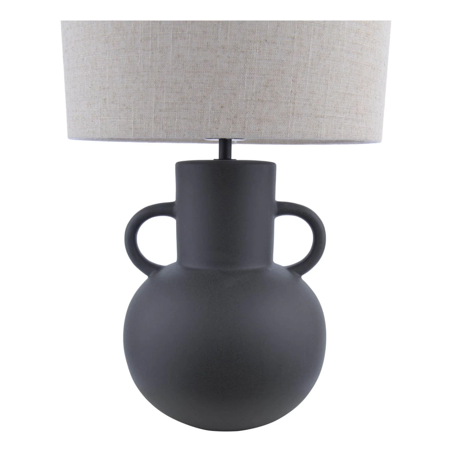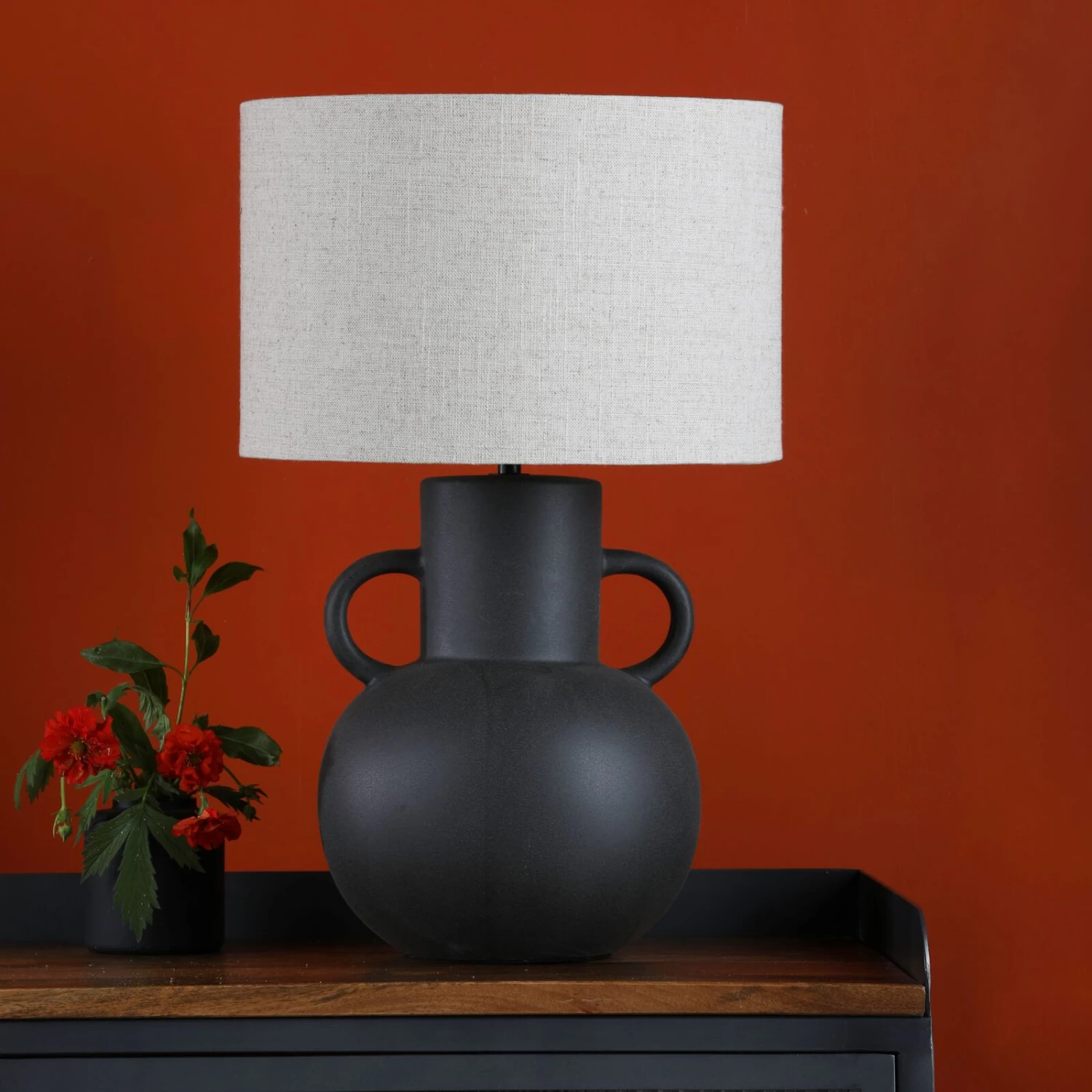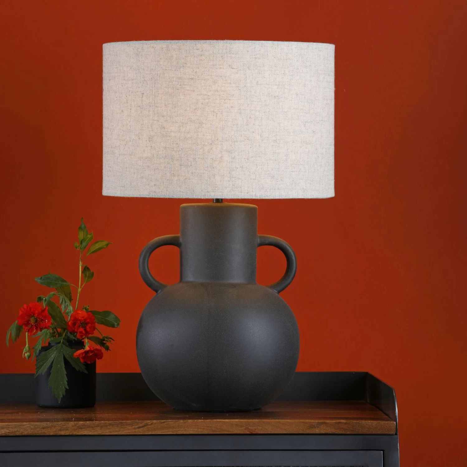 Introducing the Urn Ceramic Table Lamp Black – a contemporary reinterpretation of Greek urns that seamlessly merges tradition with modern aesthetics. Crafted with meticulous attention to detail, this terracotta table lamp boasts a tactile black finish that exudes tactile charm. Its dark tones and elegant form are complemented by a minimalist ivory shade, creating a harmonious balance between dramatic design and sleek sophistication.