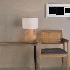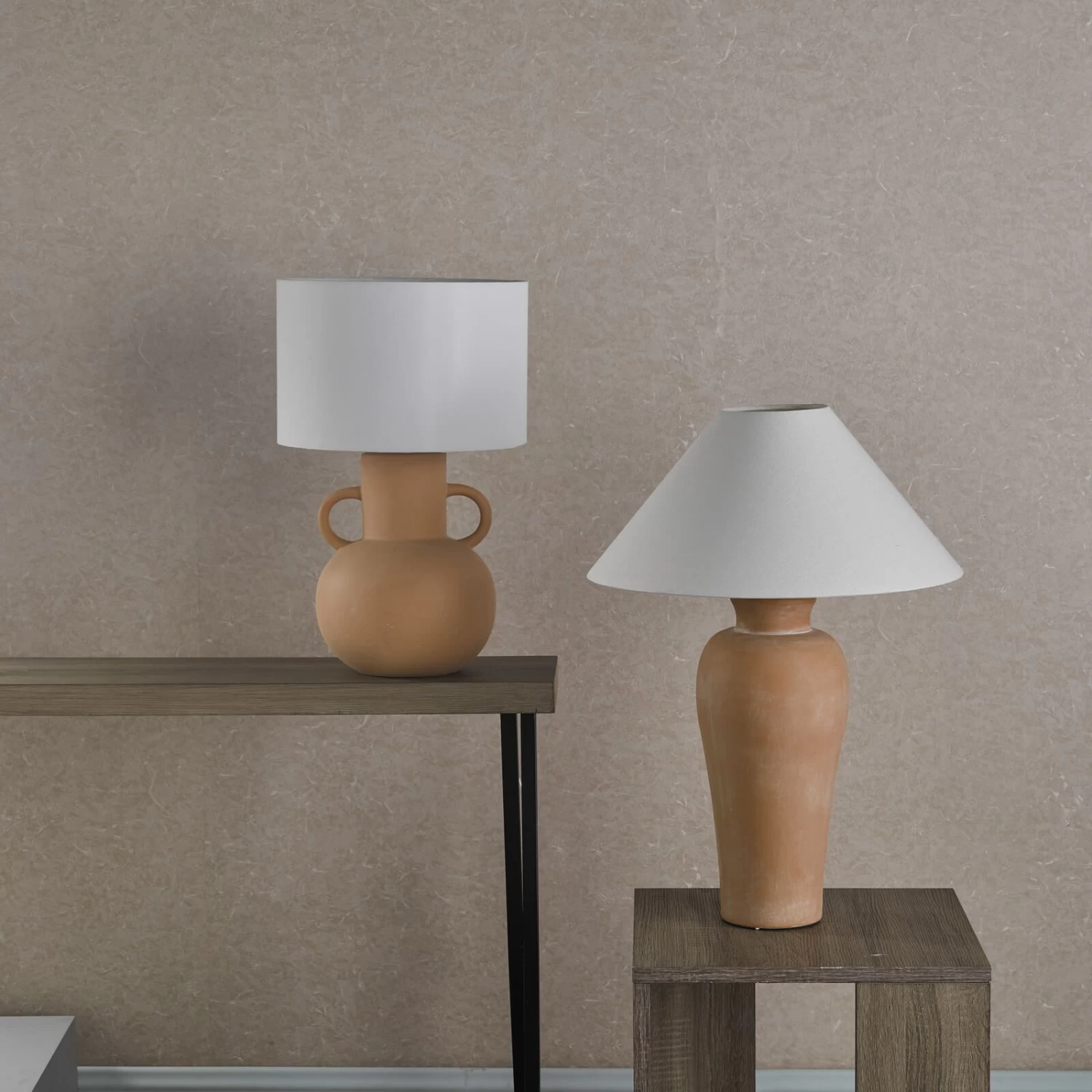 Introducing the Urn Ceramic Table Lamp – a contemporary reinterpretation of Greek urns that seamlessly merges tradition with modern aesthetics. Crafted with meticulous attention to detail, this terracotta table lamp boasts a tactile surface that exudes tactile charm. Its earthy tones and elegant form are complemented by a minimalist ivory shade, creating a harmonious balance between nature-inspired design and sleek sophistication.