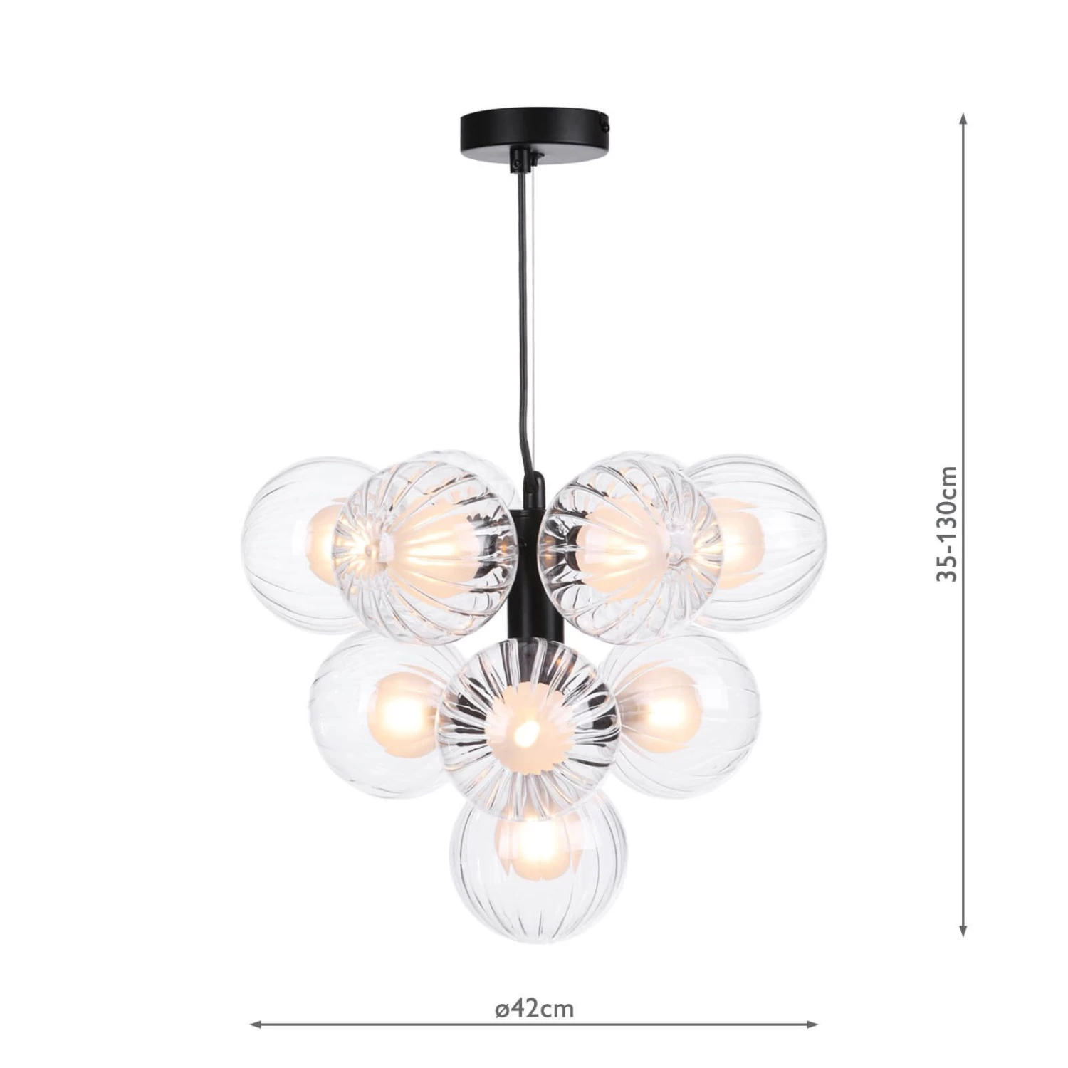 During installation, you can customize the height of the pendant light to suit your preference, ensuring a seamless integration into your decor. Illuminating your space with grace, the Vine pendant accommodates ten G9 bulbs (bulbs not included). To achieve both efficient illumination and aesthetic appeal, we recommend selecting LED bulbs from our range of LED bulbs. Elevate your living environment with the Vine 10 Light Pendant Satin Black & Duplex Glass, a perfect harmony of contemporary style and functional brilliance, designed to transform your interior with a touch of modern elegance.