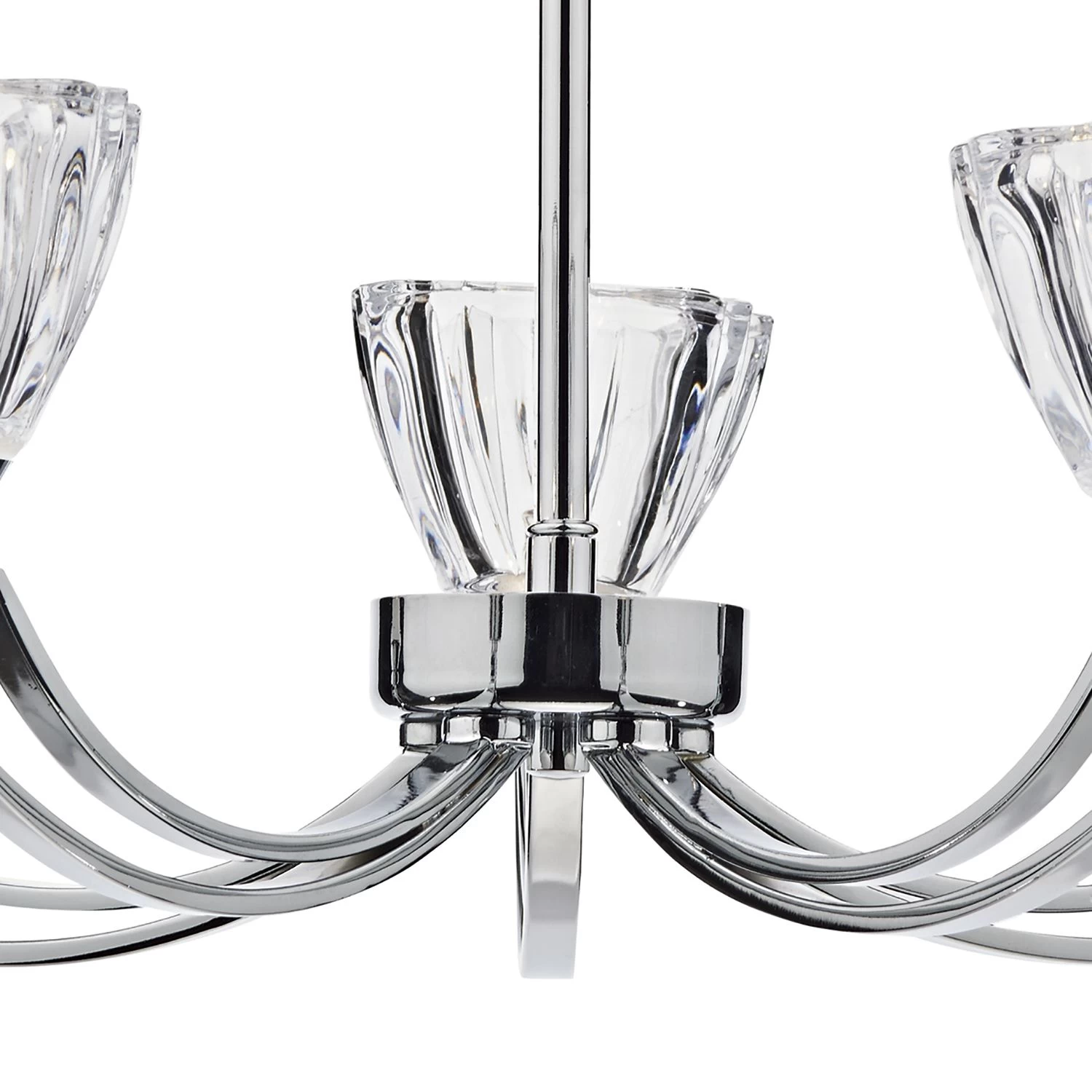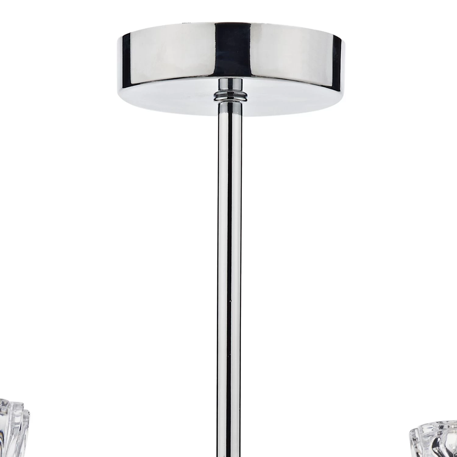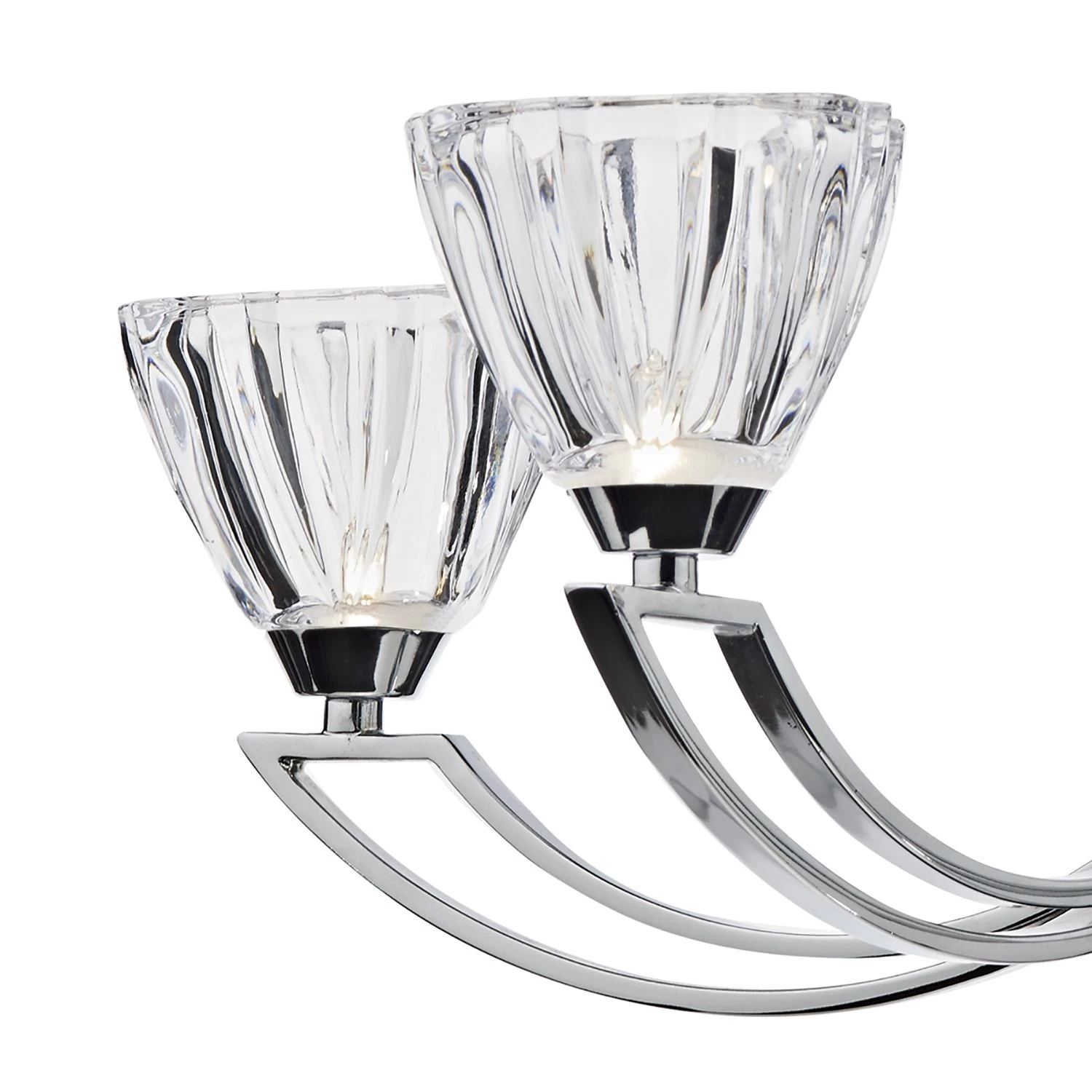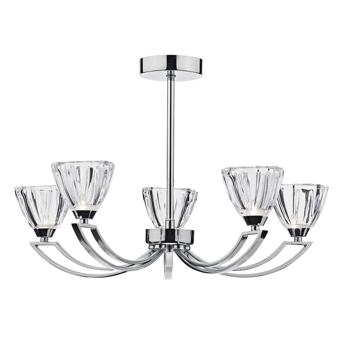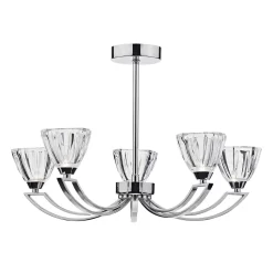 Perfect for lower ceilings the Vito range features a beautifully shaped crystal glass on a polished chrome frame with a double arm detail.