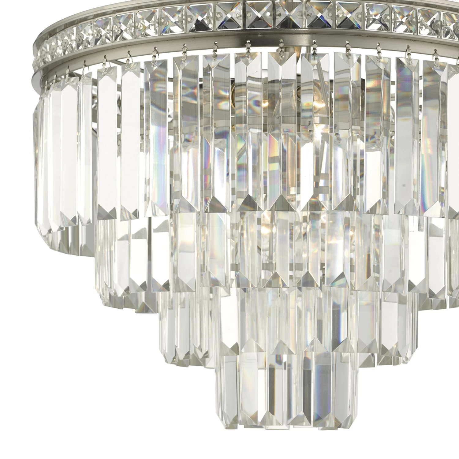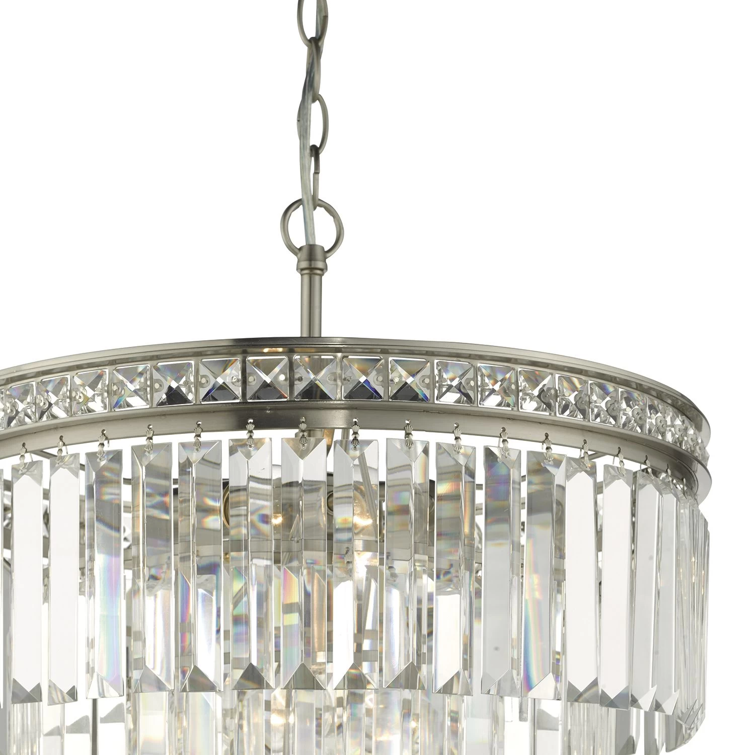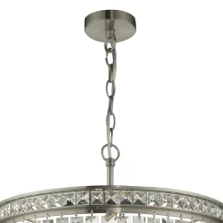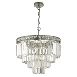 VYANA classic crystal pendant with soft brushed nickel ceiling plate and frame inset with faceted crystal squares and 4 luxury layers of heavy cascading crystal droppers. supplied with 4 x E14 lamp holders for a great light output. 1 meter of matching chain and cable.