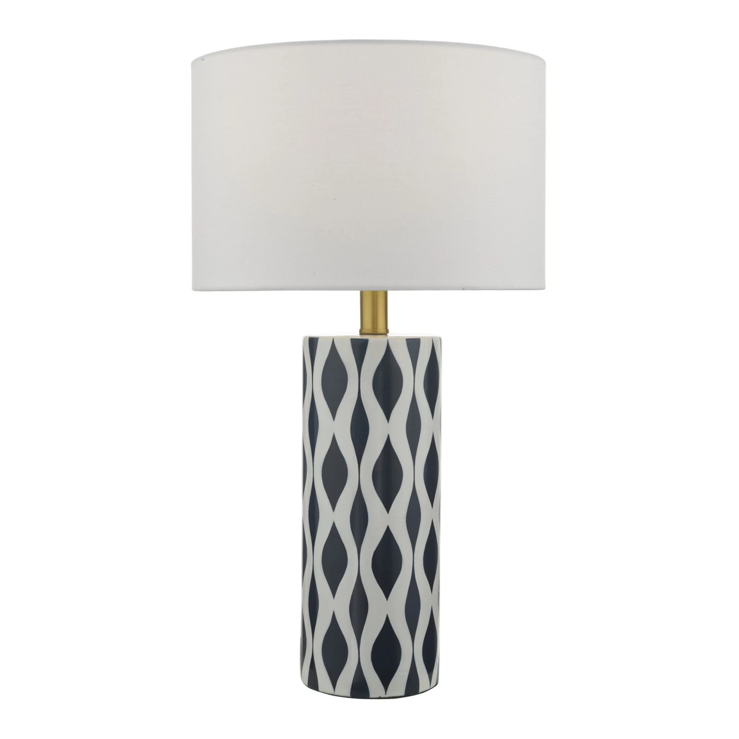 The Weylin Table Lamp WEY4223 is a ceramic table lamp with a modern navy and white glazed finish. Complete with white faux silk shade and operated via an in line rocker switch.