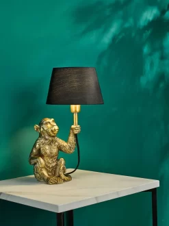 The playful Zira monkey table lamp shown here in gold, is part of our range of animal lamps, all sculptured with with high detail including high and texture, Zira looks pensively at the lit shade she’s holding (included).